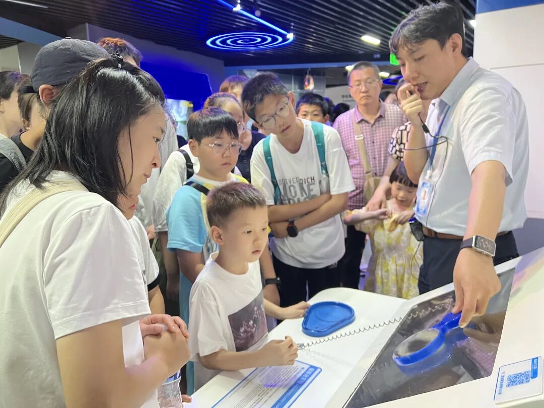 为提升科普服务体验,自7月19日起,天津科技馆实施周末延时闭馆,时间由原来的16:30延长至21:00。长达4.5小时的“科学夜场”为公众预留了充裕的探索时间和丰富的体验活动,在炎炎夏夜也能畅享科学的魅力。携手天津高校、医院、科研院所等成立科普市集,与天津市儿童艺术剧团联合打造科学互动剧《星际少年团》,举办人工智能科技体验展、灭绝及濒危物种主题展等特色临展,让公众在沉浸式体验中解锁科技赋能新场景。此外,精心策划19期“探索与挑战”系列半日营、一日营、三日营,推出5期“硬核职业试炼两日营”科技探索营,赴山东青岛、内蒙古乌兰布统开展观天入海之旅和流星雨观测夏令营,服务超千名青少年,推动科普教育从“场馆内”走向“天地间”,让科普资源“活”起来、“动”起来。